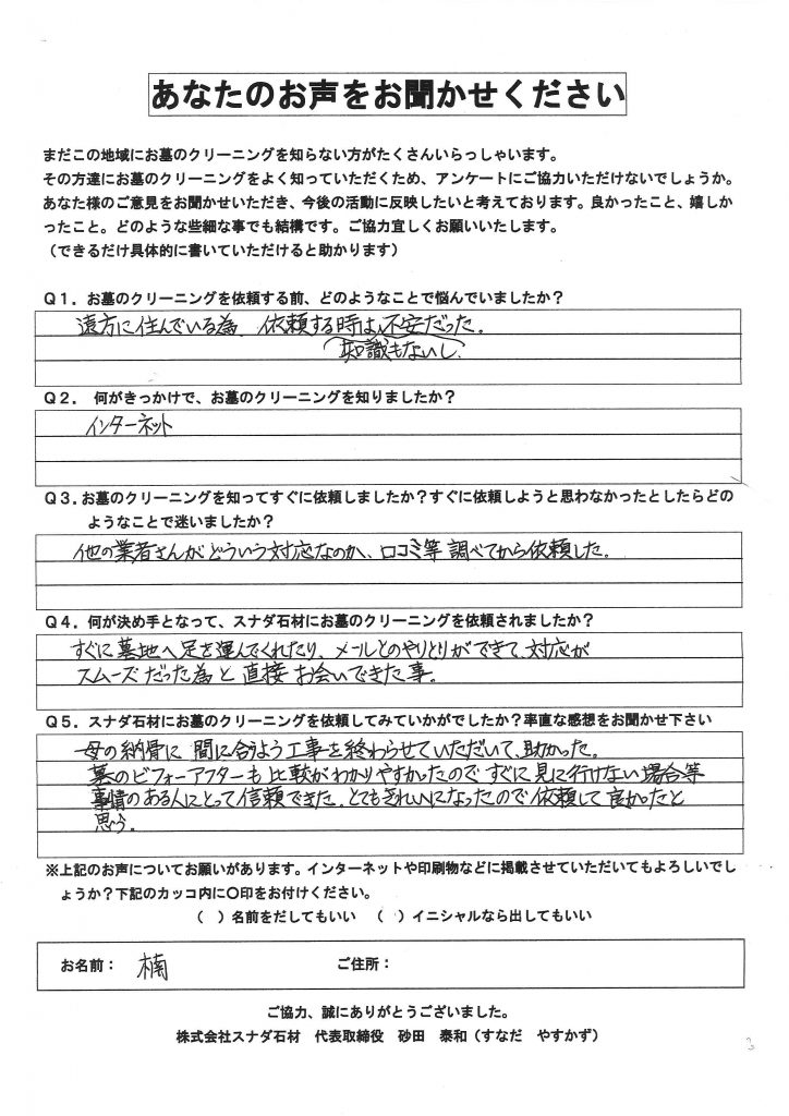 Q5.スナダ石材に依頼してみていかがでしたか?