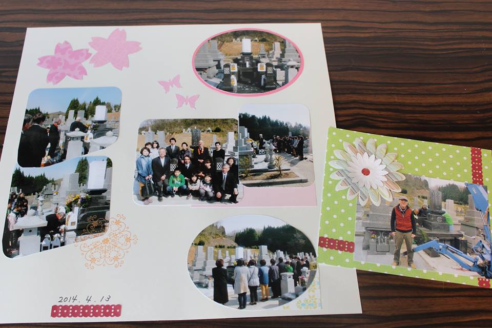 施工現場の写真の他に、納骨法要の際の写真も撮ってくださり、それを素敵にコラージュしてもらったのを仏壇に飾ってあります。