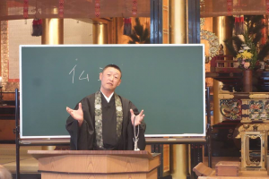 浄土真宗の法座なので、仏さま=阿弥陀さま、となりますが、私たちが唱える「南無阿弥陀仏」、「なんまんだぶ」って、何なのさ?についてお話しくださったのは、富山市本誓寺の若林浄正さん。