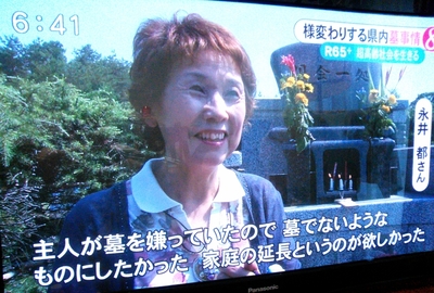 取材のお願いをするために永井さまにお電話したときに、「皆から素敵なお墓やと言われるから、私でよければ協力するよ」と快く応えてくだり、ご主人のお墓がTVで放映されることになりました。
