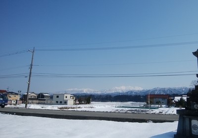 冬の晴れ間だったので、向こう側に見える立山連峰がどんどん大きくなっていきます。