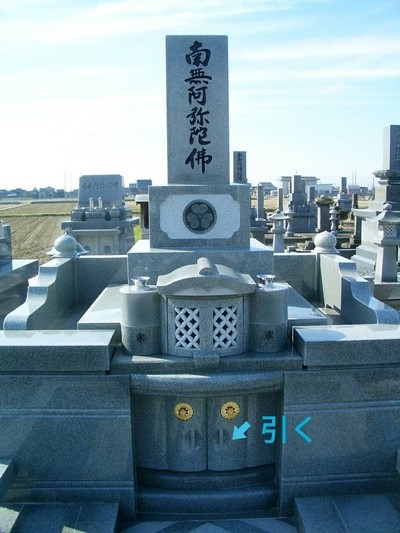 また、「日本人なら引き戸だろ!」という思いがあったのかどうか、こんな引き戸式の扉の納骨堂を作ったりも。