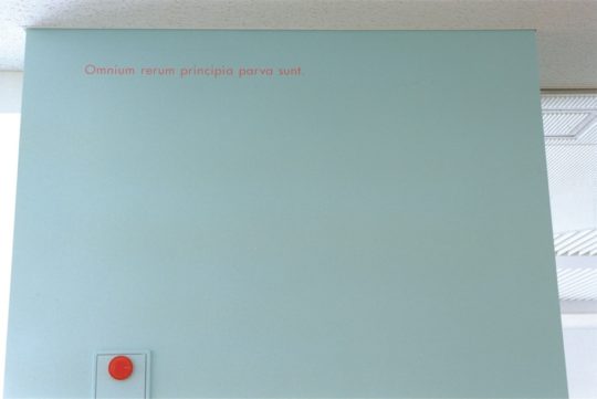 これは、古代ローマ文明の知恵の集大成とも言えるラテン語の名言で、実際に学校では18のラテン語が、各階のそれぞれの基調色に合わせて記されています。