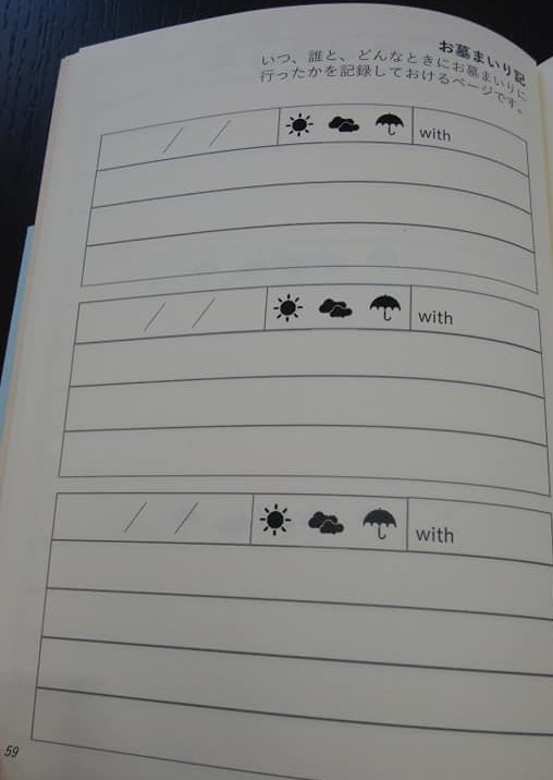 この「墓ありじいさん 墓なしじいさん」の物語をもとにして、自分たちの物語をつづるように次の世代に引き継いでいけるものがあったらいいのではないかと思い、書き込めるようにしたものが「おはかの手帖」です。