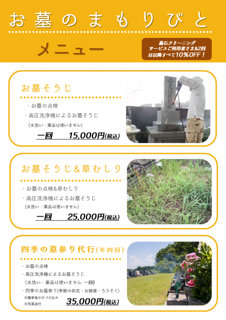 お墓そうじもプロにお願いしたい方のメニュー