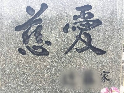 こちらの墓石に彫られた文字は、生前にご主人と奥さまが一緒に考えた言葉「慈愛」。
