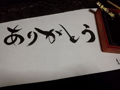 こちらのお墓も同じくアート書道家による「ありがとう」の文字が、舞台の真ん中に彫ってあります。