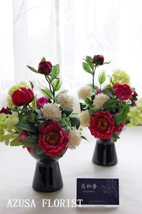 ひとくちに造花といっても品質の差はさまざまですが、取りあつかいしている仏花は、アズサフローリストさんの「白和香 Hakuwako」というブランドで、高品質な造花なので見た目も美しく長持ちし、アーティストが時間をかけ、心を込めた手作業でアレンジした仏花でございす。また、陶器が付いているので、そのまま供えていただけるようになっています。