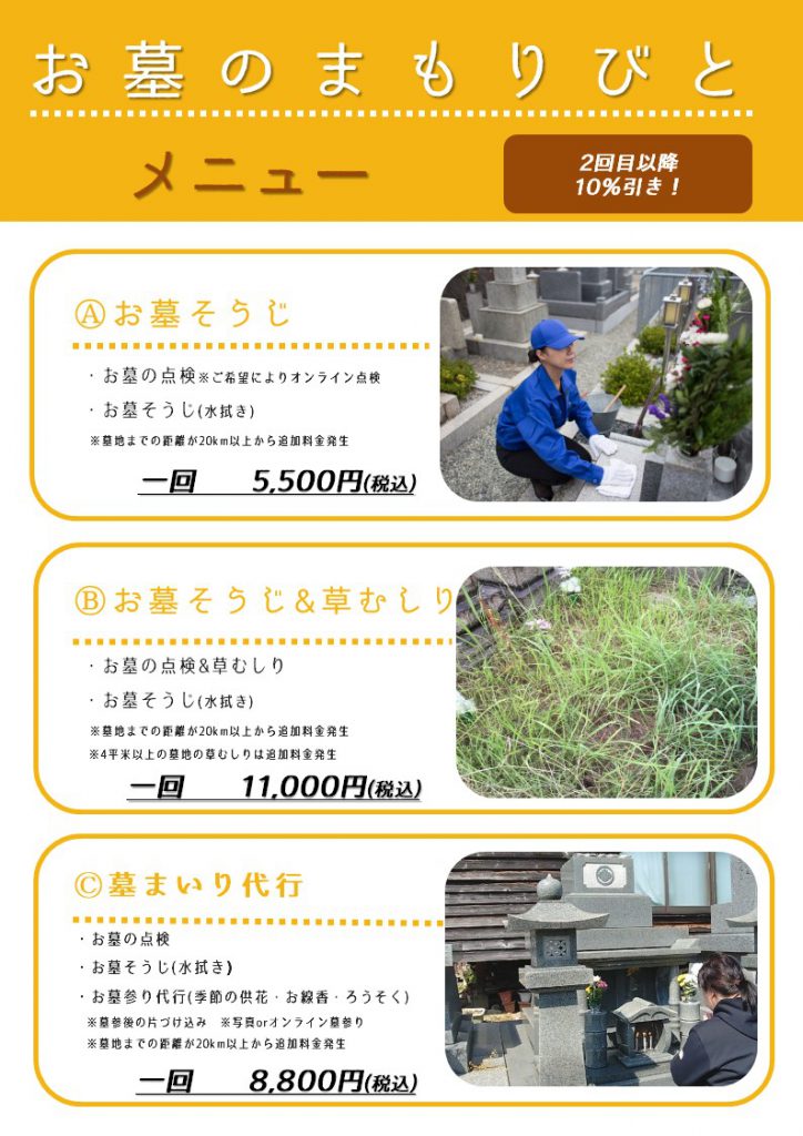 すべてのプランに、水拭きによるお墓そうじとお墓の点検がついています。